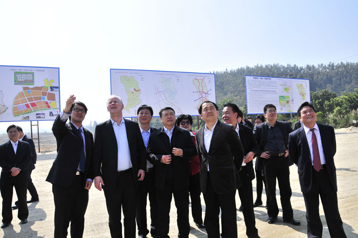 考察團(tuán)一行首先到達(dá)中國南方(揭陽)金屬生態(tài)城現(xiàn)場(chǎng),市領(lǐng)導(dǎo)陳東,揭東縣領(lǐng)導(dǎo)林炳華為沙爾平先生介紹了金屬城總體的布局,表示金屬城項(xiàng)目建設(shè)將按照“一個(gè)中心(產(chǎn)業(yè)聚集中心)、兩個(gè)基地(生產(chǎn)加工基地、貿(mào)易物流基地)、三大平臺(tái)(科技創(chuàng)新平臺(tái)、電子商務(wù)平臺(tái)、金融服務(wù)平臺(tái))”的定位進(jìn)行規(guī)劃,建設(shè)中國“金屬原材料交易中心、金屬產(chǎn)業(yè)研發(fā)設(shè)計(jì)中心、金屬制品制造中心、金屬機(jī)械制造中心、金屬產(chǎn)品銷售中心、金屬行業(yè)人才技工基地、金屬行業(yè)金融中心”七大板塊。隨后,考察團(tuán)來到中德產(chǎn)業(yè)大學(xué)園區(qū)參觀,考察團(tuán)先后參觀了大學(xué)園區(qū)建設(shè)用地,聽取相關(guān)領(lǐng)導(dǎo)介紹大學(xué)園區(qū)規(guī)劃、布局、生活配套設(shè)施和周邊園區(qū)建設(shè)規(guī)劃。