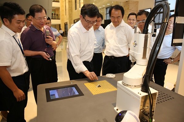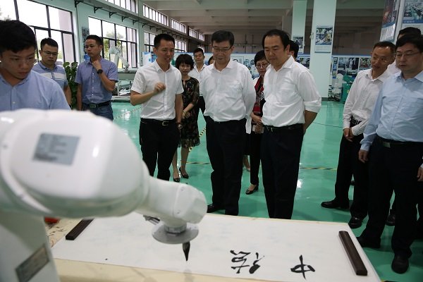 在考察中德巨輪智能工業(yè)4.0產(chǎn)業(yè)基地項目時,黃副省長一行觀看巨輪機器人作業(yè)演示,并對巨輪的智能裝備水平表示肯定,鼓勵巨輪不斷提高智能制造技術(shù)。