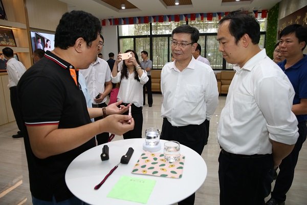 在廣東大宇環(huán)保高新技術(shù)有限公司做環(huán)?萍紕(chuàng)新產(chǎn)業(yè)這一調(diào)研工作時,黃副省長聽取工作人員講解水凈化筆的創(chuàng)新技術(shù),觀看水凈化筆演示殺菌消毒時指出:要讓大宇水凈化筆充分發(fā)揮它的作用,讓更多人知道這款產(chǎn)品不僅僅作用在凈水殺菌上。