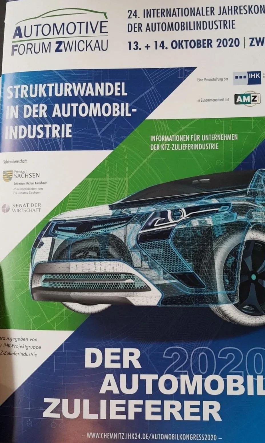 薩克森州擁有500年的汽車工業(yè)基礎(chǔ),寶馬、大眾、保時(shí)捷在薩克森州都有整車廠,并設(shè)有核心零部件工廠。將近800家零部件公司分布在薩克森各個(gè)城市工業(yè)區(qū)。在薩克森州州長Michael Kretschmer 先生的倡導(dǎo)及支持下,約150家行業(yè)領(lǐng)先企業(yè)負(fù)責(zé)人受邀參會。茨維考新任市長Constance Arndt 女士在會中發(fā)表了重要講話。此次會議主要分三個(gè)部分,分別為實(shí)地參觀大眾新能源汽車基地,汽車零部件商商業(yè)平臺交流晚宴,以及汽車專業(yè)論壇和線上線下路演。論壇主題多樣,有針對性,重點(diǎn)聚焦新能源鋰電池的回收與環(huán)保 、疫情下德國汽車工業(yè)的趨勢與措施、中國汽車市場的與德國汽車市場的比較、汽車行業(yè)的轉(zhuǎn)換之新能源汽車和氫能源汽車等熱點(diǎn)。