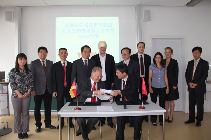 揭陽(yáng)市金屬企業(yè)聯(lián)合會(huì)吳克東會(huì)長(zhǎng)與達(dá)姆施塔特應(yīng)用科技大學(xué)校長(zhǎng)Stengler教授簽訂職業(yè)教育合作框架協(xié)議