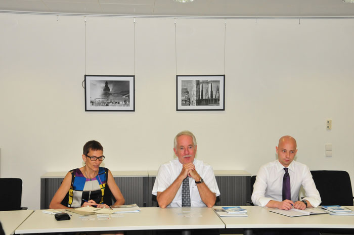 Stefan Gallon總領(lǐng)事對(duì)揭陽(yáng)市長(zhǎng)陳東的到訪表示熱烈歡迎。他高度贊賞了中德金屬生態(tài)城的示范作用,并就對(duì)外宣傳揭陽(yáng),協(xié)調(diào)德國(guó)高級(jí)專(zhuān)家組織(SES)人才派遣事宜,為中德企業(yè)的交流合作牽線搭橋作出積極回應(yīng)。同時(shí),總領(lǐng)事還確認(rèn)將在一周之后(8月14、15日)訪問(wèn)揭陽(yáng),調(diào)研考察中德金屬生態(tài)城。