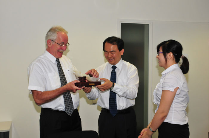 市長(zhǎng)陳東向領(lǐng)事館總領(lǐng)事Stefan Gallon先生贈(zèng)送禮物