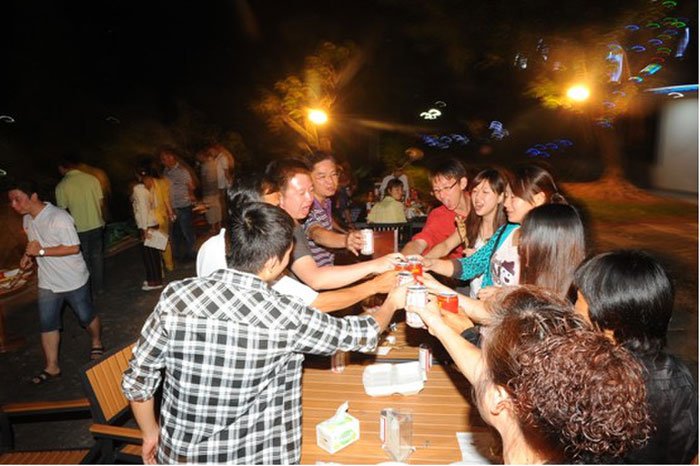 燒烤聚餐活動(dòng)中,全體員工開懷暢飲、共敘友誼