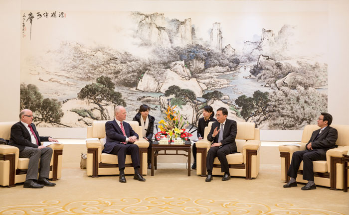昨日下午,省長朱小丹在廣州會見了中德金屬生態(tài)城項目的德國合作伙伴魯?shù)婪蛏碃柶綉?zhàn)略咨詢交流有限責任公司董事長魯?shù)婪颉ど碃柶健⑦_姆施塔特應用科技大學校長拉夫·史登格勒一行。