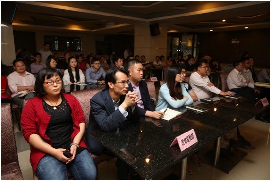 參加會(huì)議的全體員工認(rèn)真聽講