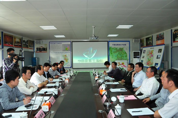黃寧生一行與市相關部門在金屬生態(tài)城建設指揮部座談