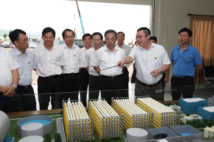 胡春華一行參觀表面處理中心項(xiàng)目展廳,聽(tīng)取污水“零排放”技術(shù)介紹