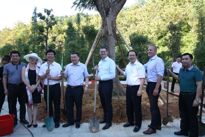 當(dāng)天下午,出席對(duì)話會(huì)的中德領(lǐng)導(dǎo)嘉賓還前往中德金屬生態(tài)城參觀考察,并出席中德金屬生態(tài)城萬畝森林公園開園儀式,共同種下象征中德友誼的鳳凰樹。