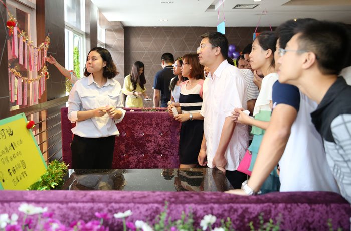 來自湖北武漢的90后葉盼盼畢業(yè)后就來到揭陽工作,參與中德金屬生態(tài)城項(xiàng)目建設(shè),今年中秋他決定留在公司過節(jié)。談及不能回家團(tuán)圓的遺憾,她坦言說:許多同事也跟他一樣,由于工作關(guān)系留在揭陽,但相信有大家作伴,在集團(tuán)大家庭里也能充實(shí)地度過這個(gè)傳統(tǒng)佳節(jié)。