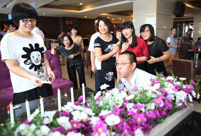 “吹蠟燭”游戲中,到場(chǎng)領(lǐng)導(dǎo)一鼓作氣,秒速吹滅火焰