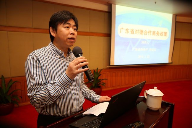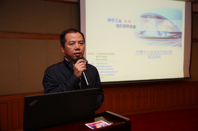 培訓課上,來自省商務廳、科技廳、知產局和經信委的有關負責人,以及銀行機構的金融專家,結合具體例子,從專業(yè)的角度向學員企業(yè)解讀了對德合作的相關政策。省商務廳投資促進與對外合作處副處長何定紅指出,省政府已出臺有關指導意見支持企業(yè)開展多形式、多領域的對外投資合作,這將推動廣東本土企業(yè)提升跨國經營水平,加快形成互促互補、共同發(fā)展的格局。省經信委技術改造投資處處長朱曉東表示,企業(yè)的技術改造、轉型升級離不開智能制造、設備更新和公共服務平臺的建設,這也是省委省政府高度重視的課題。