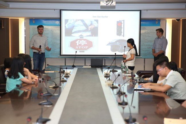 8月1日上午,中德金屬集團人力資源部組織開展了一場中德文化交流講座——“走近德國風俗,感受德國文化”;顒犹匮麃斫覍嵙暤牡聡讶薒ars Fischer 與Jonas Bensen到場分享交流。集團副總裁黃深源出席講座,來自集團各部門的近40名員工踴躍參加。