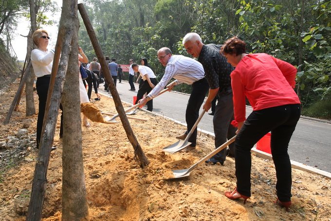 德國中小企業(yè)經(jīng)理人一行與揭陽市領(lǐng)導(dǎo)及企業(yè)家在中德萬畝森林公園共植友誼樹