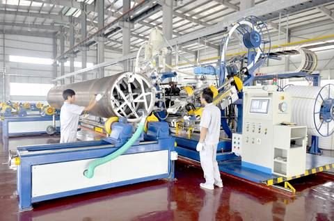 作為中德金屬生態(tài)城首批入駐的中德合資企業(yè),保庫智能將把德國保庫豐富的應(yīng)用經(jīng)驗特別是城市地下蓄洪管網(wǎng)和反滲排水管網(wǎng)的應(yīng)用帶到中國,這將有助于把傳統(tǒng)的現(xiàn)代化城市升級成可智能利用水資源的“海綿型”城市,其市場十分廣闊。該項目的第一條生產(chǎn)線正在進(jìn)行最后調(diào)試,預(yù)計12月份即可正式投產(chǎn)。在公司的遠(yuǎn)期計劃中,這種采用德國先進(jìn)設(shè)備和工藝、具有節(jié)能環(huán)保等特點的生產(chǎn)線還將增加至5條,預(yù)計年產(chǎn)量2萬噸,年產(chǎn)值超6億元。
