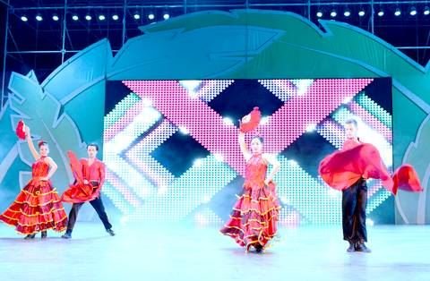 銀星廣場上,燈光閃爍,舞臺上,來自歐洲的歌舞團(tuán)用精彩的舞蹈表演吸引了大批觀眾觀看,歌舞團(tuán)以一曲形式開放自由的踢踏舞開啟表演,舞者跟隨舞曲的節(jié)奏,通過趾尖與腳跟的相互配合,發(fā)出響亮的“踢踢踏踏”聲音,活潑歡快的表演獲得臺下觀眾的陣陣掌聲。隨后,光影陸離的光影舞、富有異域風(fēng)情的肚皮舞等精妙的節(jié)目更是讓大家贊嘆不已,現(xiàn)場觀眾紛紛拿出手機(jī)記錄一個個精彩的瞬間,整個廣場成為一片歡樂的海洋。