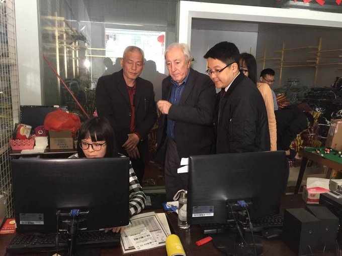 在揭期間,Hassler教授還為跨境電商產(chǎn)業(yè)園區(qū)做指導(dǎo)培訓(xùn)工作,為跨境電商展示領(lǐng)域提供咨詢和建議,同時對廣東中德電子商務(wù)有限公司和特色德國店線上+線下的銷售模式進行指導(dǎo)。