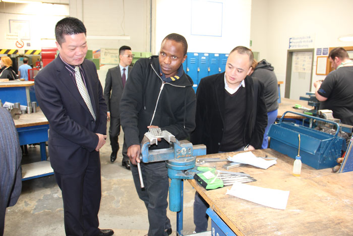 代表團在沙爾平先生的介紹下,深入考察了德國的職業(yè)教育體系,先后參觀了黑森-圖林根大區(qū)工會下屬的職業(yè)技術(shù)學(xué)校海因里希-克萊因爾學(xué)校,實地參觀了德國職業(yè)技術(shù)學(xué)校教學(xué)現(xiàn)場。德國學(xué)生經(jīng)過培訓(xùn)后達到的高超技藝,給代表團留下了深刻印象,并立即與相關(guān)部門達成了職業(yè)教育培訓(xùn)合作意向,為揭陽創(chuàng)辦產(chǎn)業(yè)技術(shù)應(yīng)用大學(xué)積累了寶貴的合作資源。