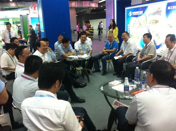 10月11日至14日, 由工業(yè)和信息化部、廣東省人民政府等和墨西哥經(jīng)濟(jì)部聯(lián)合主辦的第十一屆中國(guó)國(guó)際中小企業(yè)博覽會(huì)在廣州舉行。揭陽(yáng)副市長(zhǎng)張時(shí)義等市領(lǐng)導(dǎo)組團(tuán)帶領(lǐng)的57家企業(yè)參展尋覓商機(jī)。作為以生態(tài)環(huán)保與國(guó)際合作為特色的揭陽(yáng)重點(diǎn)推介項(xiàng)目,中德金屬生態(tài)城成為境內(nèi)外企業(yè)駐足洽談商務(wù)合作的焦點(diǎn)。