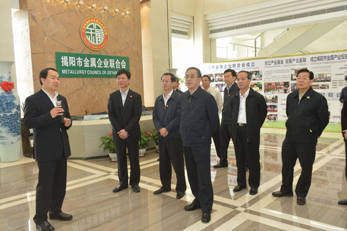 參觀過程中,胡春華書記充分肯定了揭陽市金屬企業(yè)聯(lián)合會創(chuàng)新型的實現(xiàn)政府引導、協(xié)會主導、市場化運作模式,強調(diào)要把加快揭陽金屬產(chǎn)業(yè)經(jīng)濟發(fā)展作為重要任務(wù),為加快打造粵東經(jīng)濟增長極、沿海經(jīng)濟增長極,為努力走出一條粵東城市群建設(shè)發(fā)展新路做出先進表率。胡春華書記深入市金屬企業(yè)聯(lián)合會調(diào)研指出,我市加快金屬產(chǎn)業(yè)轉(zhuǎn)型升級的工作思路很好,工作措施扎實推進,要求市相關(guān)部門認真抓好落實,把揭陽市金屬產(chǎn)業(yè)發(fā)展的宏偉藍圖變成現(xiàn)實。